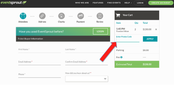 Promo codes can be entered during checkout on the right hand side of the page. Insert the promo code under the designated "Promo Code" section in your cart and hit "Apply".